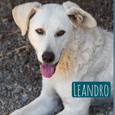Leandro e i suoi fratelli erano in strada, ma alcuni di loro sono stati investiti da un'auto; Caterina li ha soccorsi e ha portato i sopravvissuti al sicuro nel rifugio. Leandro è un cane timido, ma pian piano ha imparato a fidarsi sempre di più, è felice quando entri nel recinto e annusa con curiosità. Ha bisogno di persone pazienti che lo aiutino a fidarsi completamente degli uominesto